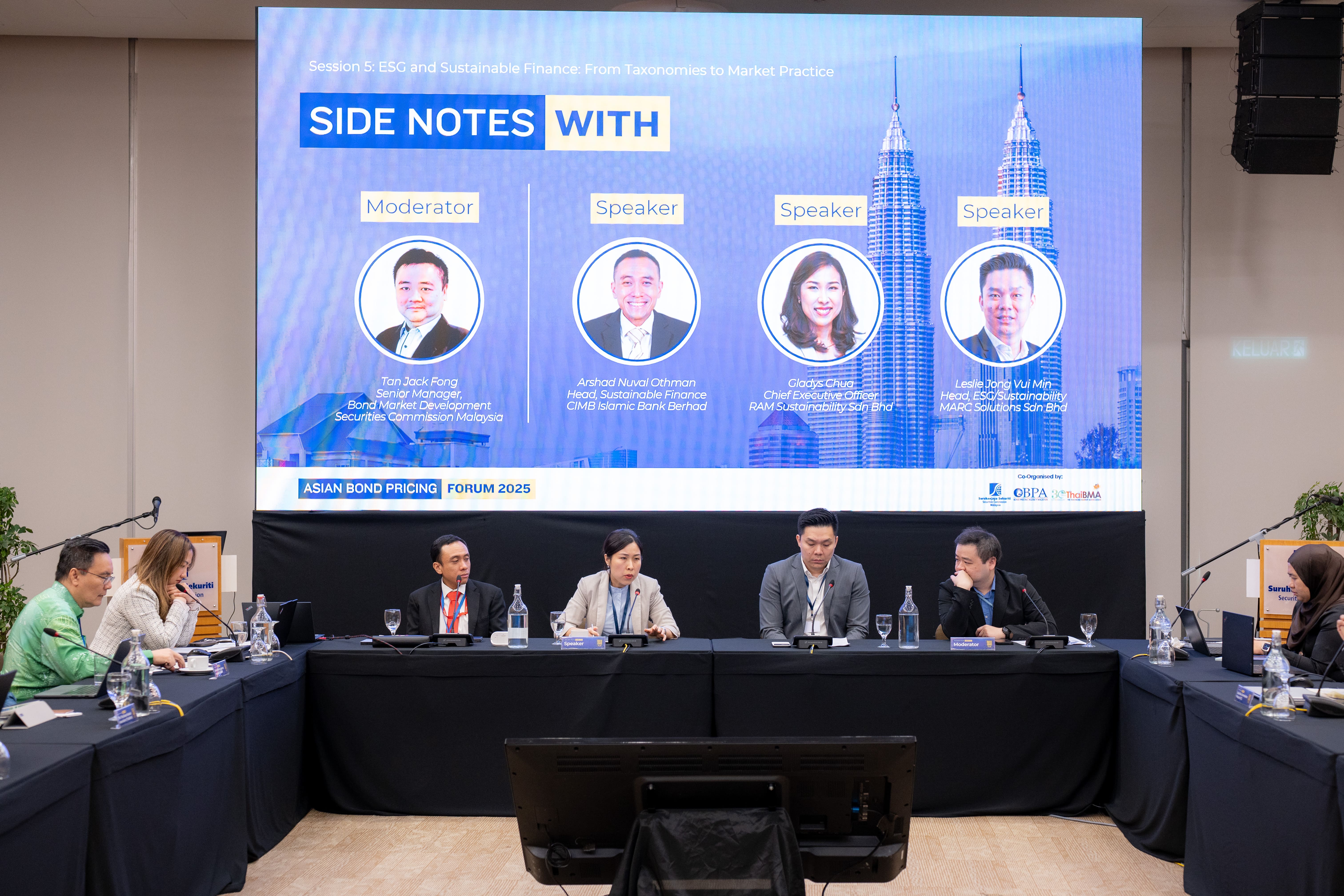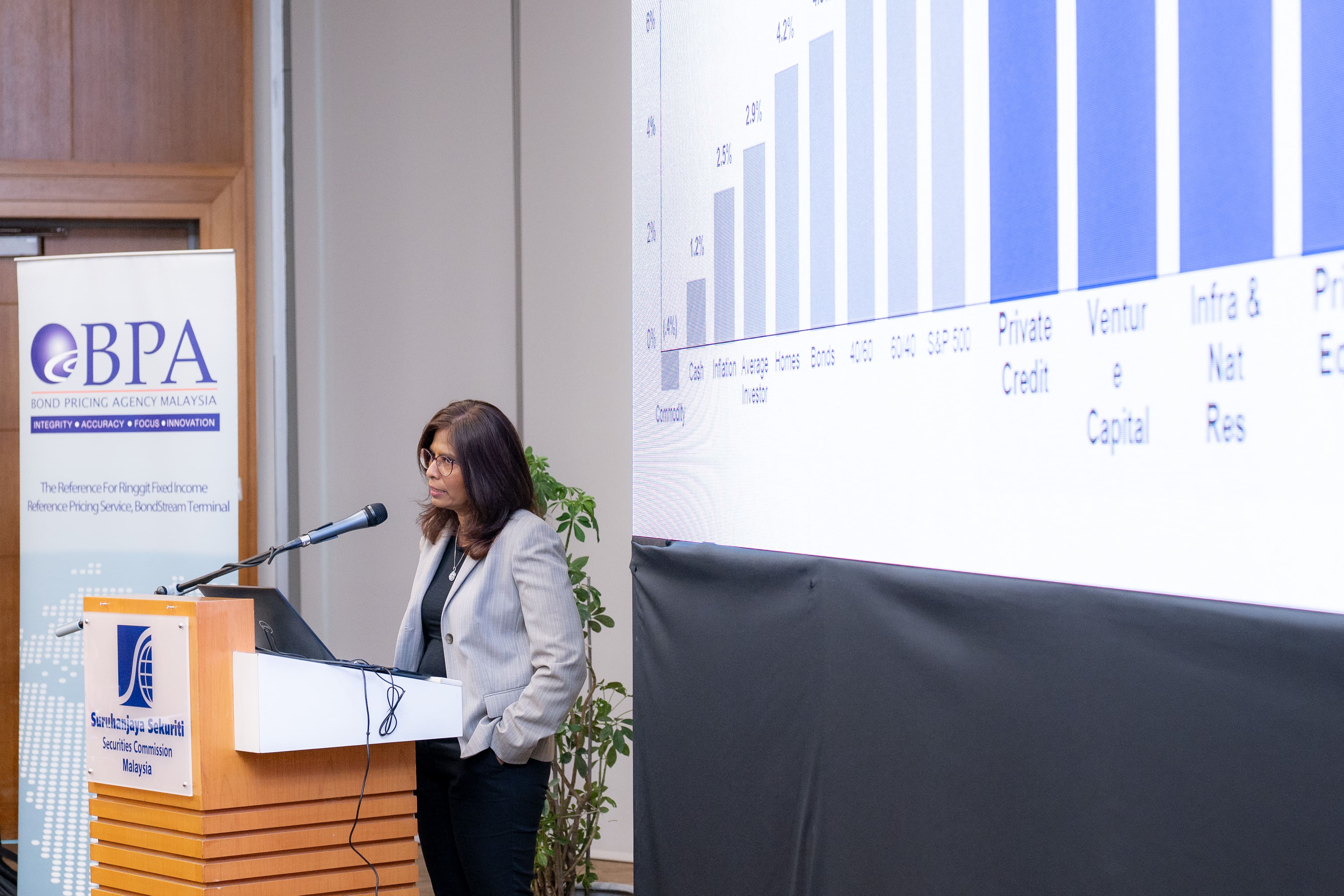 Day Two began with the theme of sustainability, focusing on regional differences in ESG principles and market mechanisms. Speakers such as Arshad Nuval Othman (CIMB Islamic Bank), Gladys Chua (RAM Sustainability), Leslie Jong Vui Min (MARC Solutions), and Tan Jack Fong (SC) shared their perspectives on ESG integration and the growing importance of sustainable finance in the bond market. This was followed by Selvarany Rasiah (Kapital DX), who discussed the use of tokenisation and digital platforms in expanding market accessibility. Later sessions featured Haza Rina Borhan and Audrey Chai (BPAM), who spoke on partnership integrity and collaboration in supporting transparent valuation practices, while Leong See Meng (Bursa Malaysia) and Noor Bazlina Sharifmuddin (BPAM) concluded the forum with discussions on index harmonisation and the development of regional benchmarks.